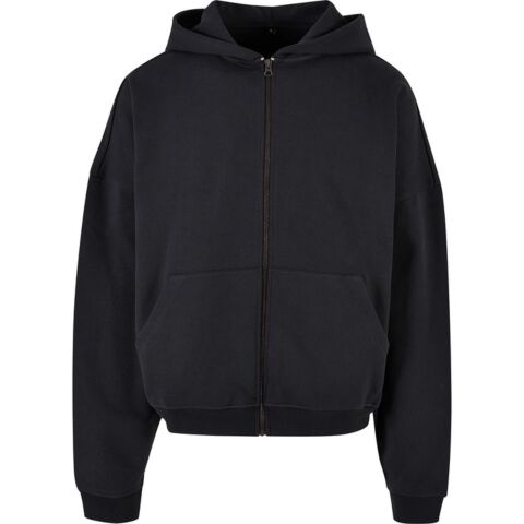 Presenting an oversized fit with heavily dropped shoulders, an extra-large hood and a divided kangaroo pocket, this men’s zip hoodie is a homage to the vibe of the 90s. The style is completed by wide rib cuffs on the sleeves and hem. Made from heavy cotton terry, it can further be refined with screen or flex printing.