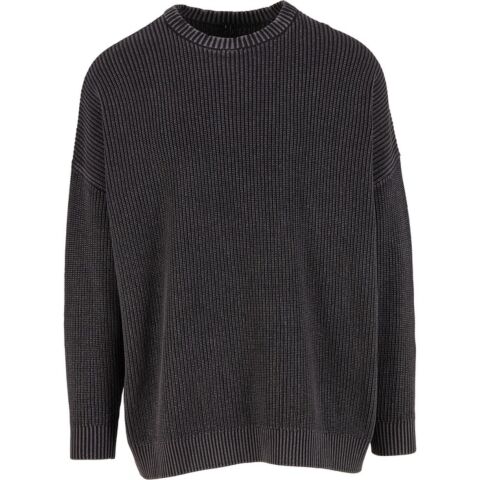 Oversized fit. Heavily dropped shoulders. Patent knit. Knit cuffs and hem. Acid wash.