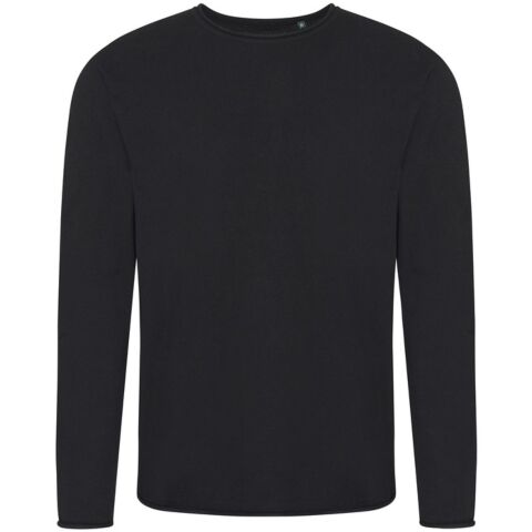 Lightweight sweater made from regenerated cotton. Set-in sleeves with rolled cuffs , hem and collar.