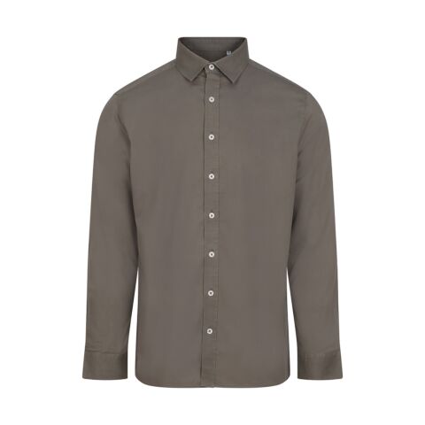 Regular fitting casual shirt with garment wash for subtle distressed look. Peached finish on fabric. Made from 100% organic cotton. Contrast pearlised buttons on the centre front and cuffs. Adjustable cuffs. Back yoke. Centre back box pleat. Outer hanging loop. Tag-free for easy rebranding.