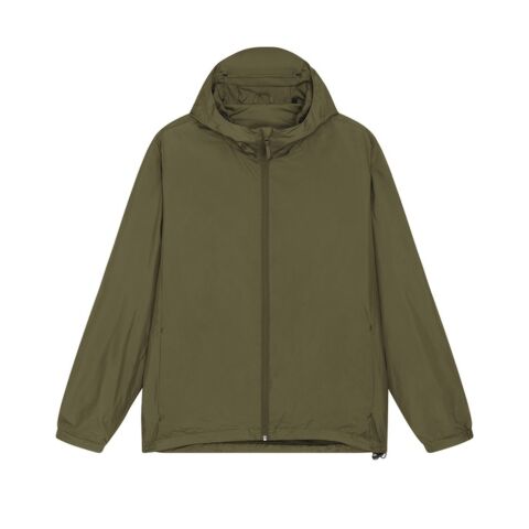 Longer back length with curved hem for protection. Bottom hem and hood with adjustable plastic stopper and elastic cord. Sealed hood visor and sealed welt pockets. Zipped welt pockets with extra grosgrain pull. Self-fabric half-moon at back neck. Inside zip opening at bottom hem and wearer’s left chest for easy decoration.