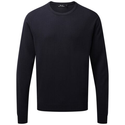 Crew neck cotton-rich knitted sweater