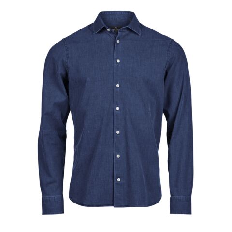The Denim shirt offers a comfortable fit with casual refinement. Garment-washed, it’s crafted from a fine long fibre cotton and elastane blend, providing a soft stretch that enhances freedom of movement. It’s designed with a wide spread collar and a curved hem, while the Ascolite button-wrapping system ensures the buttons remain intact through repeated washing.