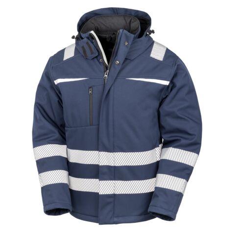 The new generation in safety wear! This 3-layer performance dynamic softshell brings style, fit and comfort. The durable water-repellent fabrics, breathability, inner storm cuffs and hood all add to the windproof protection whilst the modern printed chevron design brings the EN ISO 20471 Class 2 visibility that allow this beautiful jacket to stand out from the crowd!
