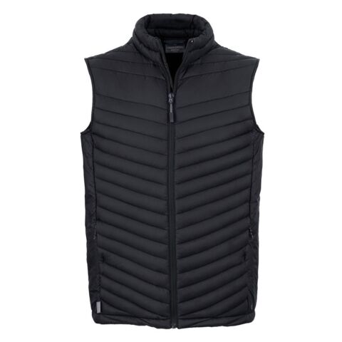 Water-resistant padded vest, with a full-length zip and 4 pockets, one of which doubles as a stow pocket. Recycled polyester mini ripstop with EcoShield DWR finish outer and lining. ThermoPro recycled polyester fill and recycled zip tapes. 4 pockets: 2 welted zipped lower, 1 concealed zipped inner and 1 passport RFID.
