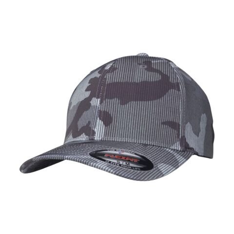 Flexfit camo stripe cap. Trendy camo print and subtle striped design. Slightly curved brim. Patented Flexfit technology.