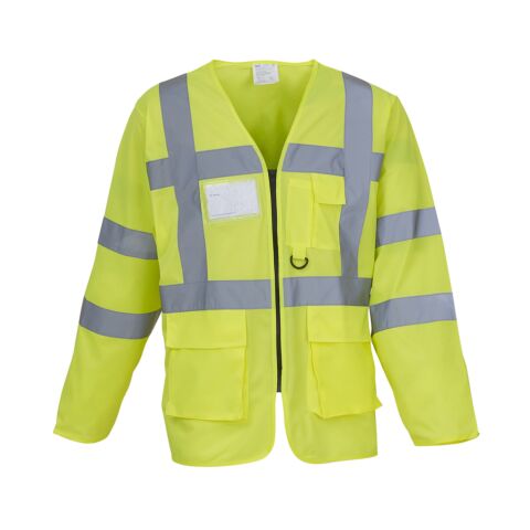 YOKO high visibility executive vest is a success. This long sleeved version is also manufactured from top quality high visibility components following the request of many customers who need the full class 3 motorway specification and also need a smart, light and flexible comfortable fit of the waistcoat fabric.