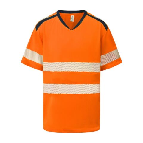 Conforms to EN ISO20471:2013 Class 2. Hi-vis Orange and Hi-vis Orange/Navy also conform to RIS-3279-TOM. Made of premium quality waffle piqué fabric from recycled polyester. Superb design around the collar and shoulder with heat-sealed comfort round-corner reflective trims for a smart and professional look in the workplace. Two 6cm-wide comfort reflective trims around the body and one over each arm and shoulder. Relaxed fit. Twin-needle stitching. Split hem. Tag-free. Individually packed. UV protection to UPF 40+.