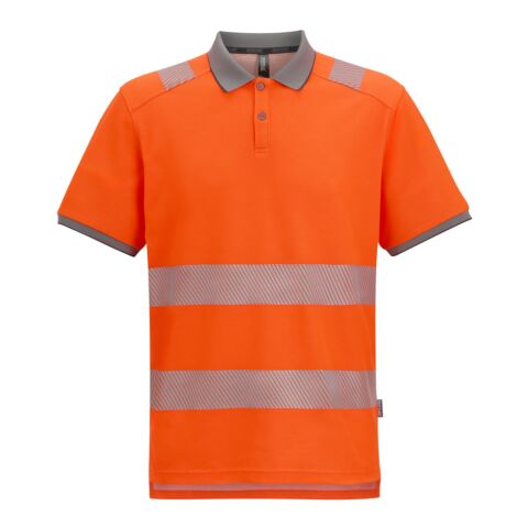 Polycotton piqué fabric with cotton on the inner side for enhanced comfort against the skin. Lightweight and breathable. Certified to EN ISO 20471:2013 A1:2016 Class 2. Orange colourway also certified to RIS-3279-TOM. Fabric provides UPF 40 protection. Heat-applied segmented tape for additional comfort. Contrast tipping to ribbed collar and cuff. Two-button placket. Side vent detail. Contains recycled polyester.
