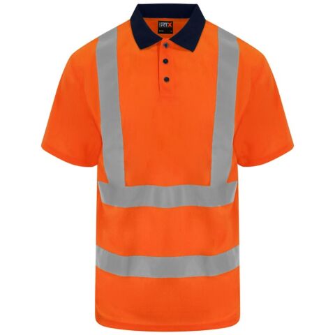 Certified EN ISO 20471:2013+A1:2016. RIS-3279-TOM ISSUE 1:2016 (Orange only). HV Orange/Navy & HV Yellow/Navy - Class 2. Ribbed contrast colour collar. 3-button placket, contrast colour buttons plus 1 spare. Twin-needle stitching on shoulder. Twin-needle stitching on sleeve and bottom hem. Side seam vents. Over shoulder and around body reflective tapes. Around body tape finishes before the side seam for comfort and ease of fit.