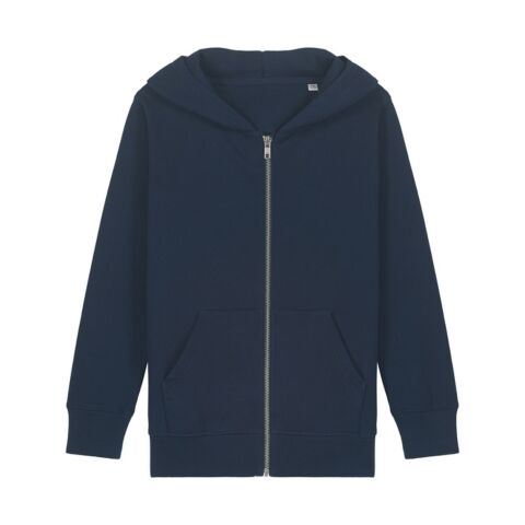 The iconic kids’ zip-thru hoodie sweatshirt. Medium fit. Set-in sleeve. Self-fabric lined hood. 1x1 rib at sleeve hem and bottom hem. Twin-needle topstitch centred on seam at hem, cuff and armhole.