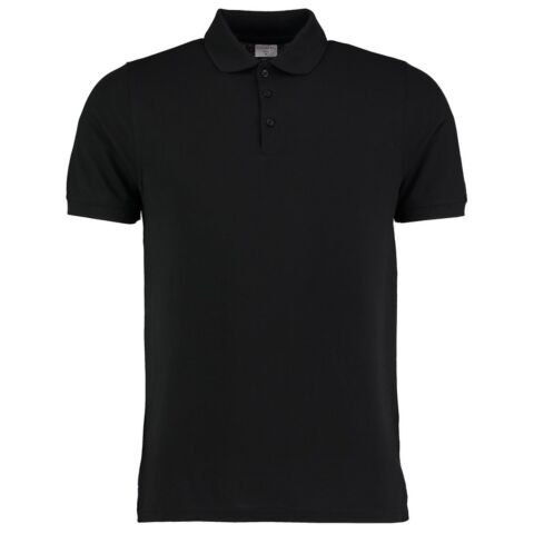 1x1 rib flat knit collar and cuffs. Double-stitched armholes, shoulders and cuffs. Side vents. 3 button narrow placket with slanted top. Taped back neck and shoulder seams. Twin-needle hem. Half moon back yoke. Spare button. Superwash® 60° swing ticket. Kustom Kit® tear out label.