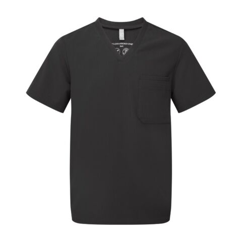 Men’s short sleeve scrub tunic. Comfortable four-way stretch. Breathable, easycare, crease-resistant fabric. V-neck, centre patch pocket with combined pen pocket. Back darts, side vents and modern fit. Decorate with embroidery and/or print. Contains certified recycled polyester.