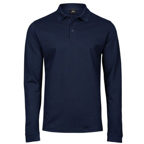 Flat knit collar with elastane. Mini piqué and tailored fit. Double pre-shrunk. Herringbone neck tape. Long-fibre cotton. Enzyme-washed. Silicone treatment. Clean finished placket and long sleeves with cuff. Certified organic cotton.