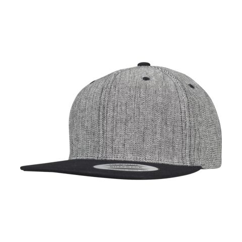 Simple and stylish, the melange solid snapback is made of classy cotton twill with a fine melange look. In subtle contrast, the flat brim and the typical snap closure is entirely black. A versatile cap that looks equally good when worn with a shirt or a v-neck.
