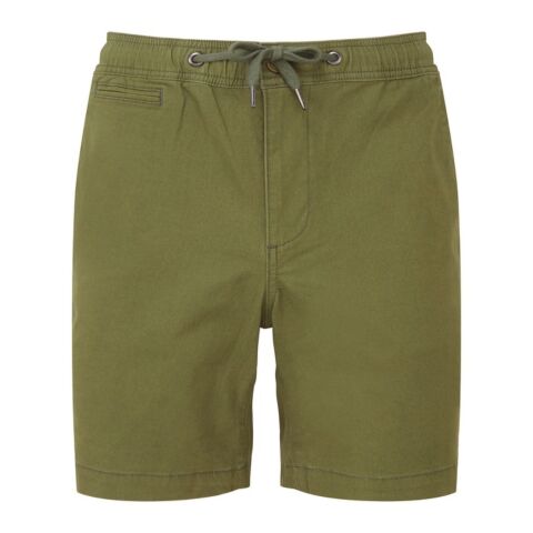 Two swing pockets and two back jet pockets with button fastening to one. Coin pocket. Elasticated waistband with drawstrings. Gunmetal eyelets and caps to drawstrings. Zip fly and button fastening to the front. Soft finish fabric. Shorts can be worn rolled up.