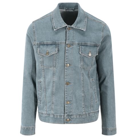 Cotton/elastane blended denim jacket with classic denim styling. 4 pocket design, shank button placket, button cuffs and adjustable back. Fashion fit. Stretch denim. 4 pocket styling. Classic light and dark blue washes. Contrast stitching. Classic denim jacket panelling. Button cuff detail. Inside back neck hanger loop.