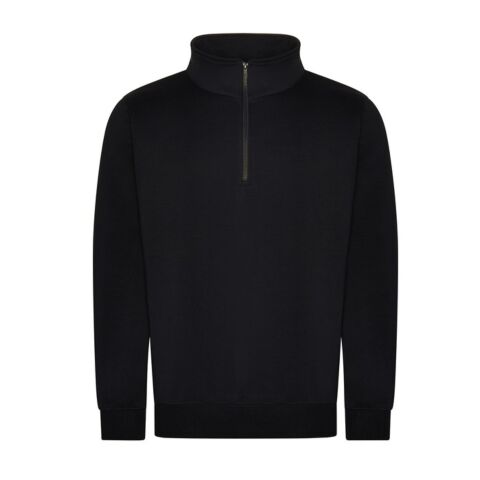 YKK zip and pull. Twin-needle stitching at arm, cuff and hem. 2x1 rib on cuff and hem. Heavier-weight fabric. Modern yet comfortable fit. Half-zip neck. Brushed inner fleece.