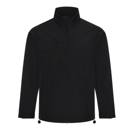Standard fit. Full-zip front. Zipped chest and side pockets. Printable three-layer binded softshell fabric. Chinguard. Internal storm flap. Adjustable shock cord hem. Windproof and showerproof.