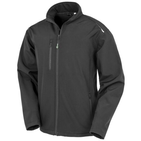 Softshell jacket with full front YKK zip with chin guard and zip pull. Reflective shoulder trim on front and back. Top stitch yoke detail front and back. Zipped chest and front pockets. Shaped body panels. Open cuff and hem. Stand-up collar. Hang loop. TOPGREEN® yarns. PFOA-free.