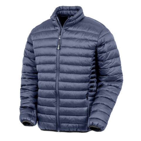 Showerproof. Breathable. Windproof. Heavy-duty zip-through collar with chin guard and zip pull. Black elasticised bound cuff and hem. Soft-feel poly wadding. Zipped pockets. Inside pockets. Hand loop. Contrast underarm horizontal panelling. Fashionable quilted design. Recycled fabric.