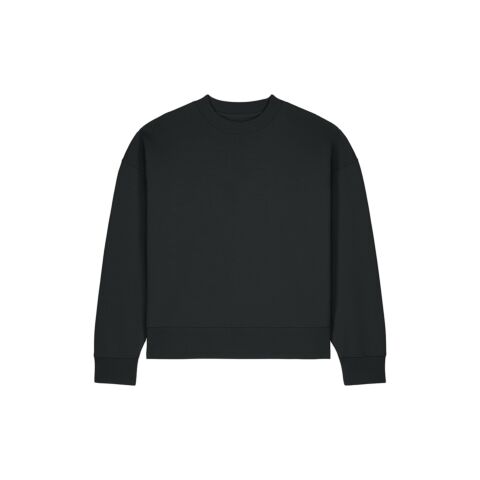 Unisex recycled cotton boxy crew neck sweatshirt. Set-in sleeves. 1x1 rib at sleeve cuffs and hem. Twin-needle topstitching centred on seams at shoulders, armholes, sleeve cuffs and hem. Inside herringbone back neck tape. Self-fabric half-moon at the back neck. Contains 50% GRS-certified recycled cotton and 50% OCS-certified organic cotton, certified by Control Union CB-CUC-1393082.