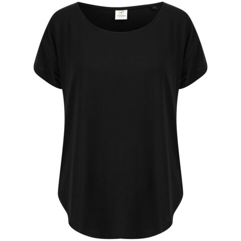 Women's scoop neck T with oversized fit and scoop neck. Dropped shoulder seams and dropped tail hem on back. Super soft fabric. Tear-out label.