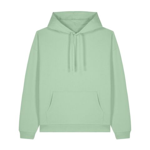 Set-in sleeve. Double-layered hood in self-fabric. Flat drawcords in matching body colour. Embroidered eyelets. Double-needle topstitch on all seams. 2x1 ribs at sleeve cuffs and bottom hem. Kangaroo pocket at front. Inside herringbone back neck tape. Self-fabric half moon at back neck.