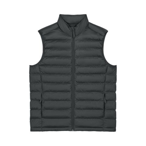 Men’s bodywarmer. Medium fit. Sleeveless. High collar. Reverse nylon zip at centre front. Zipped welt pockets with extra grosgrain puller. Elastic tape binding at the armhole. Fully quilted. Side panels for a better shape. Inside seams with binding finish. Bottom hem has an adjustable plastic stopper and elastic cord.