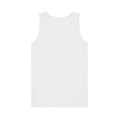 The Stanley Stancer tank top for men. Medium fit. Sleeveless. Self-fabric binding with twin-needle topstitches at collar and armhole. Back neck tape in self-fabric. Twin-needle topstitches at hem.