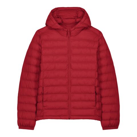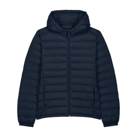 Men’s padded jacket. Medium fit. Set-in sleeve. High collar with a grown-on hood. Adjustable hood opening and bottom hem with plastic stopper and elastic cord. Reverse nylon zip at centre front. Zipped welt pockets with extra grosgrain puller. Fully quilted. Side panels for a better shape. Self-fabric elasticated cuff. Inside seams with binding finish.