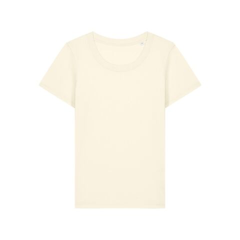 Iconic mid-light women’s t-shirt. Fitted. Set-in sleeve. 1x1 rib at neck collar. Inside back neck tape in self-fabric. Narrow twin-needle topstitch at sleeve cuff and hem.