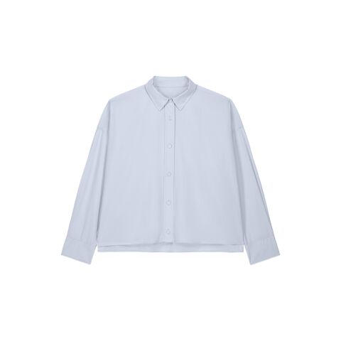 The Stella Harper is a women’s boxy shirt made from lightweight organic poplin cotton, offering a soft hand feel and breathable comfort. With a modern oversized fit and a feminine shape, it features a structured shirt collar and grown-on placket, as well as square cuffs with double pleats for subtle volume. Twin-needle topstitching at the yoke, shoulders and seams adds durability and refinement, while the dipped back panel and side vents create a flattering silhouette. Designed as a tailored shirt for lifestyle and statement branding, it provides a premium base for embroidery or print, delivering a bold, modern edge.