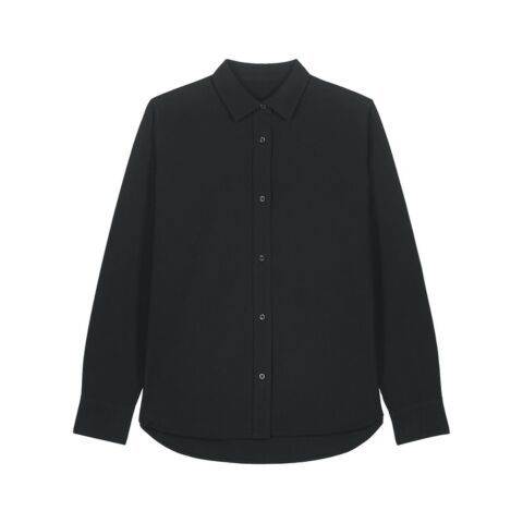 The Stella Oxford shirt for women. Medium fit. Point collar with single-needle topstitches. Collar stand. Front placket with single-needle topstitches on each side. Forwarded shoulder. Back yoke with box pleat. Inside yoke in self-fabric. Set-in sleeves. Sleeve placket with one button. Sleeve cuff with two buttons. Rounded cuff corners. Double pleats at cuff seam.