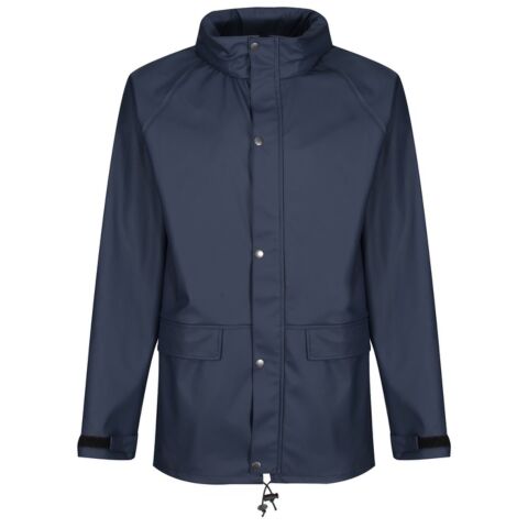 Highly breathable waterproof and windproof PU-coated fabric. Comfortable and lightweight tricot knit backing. Packaway hood with adjusters and studded stormflap. Adjustable cuffs and hem. Reach certified. Ethical Trading Initiative certified.