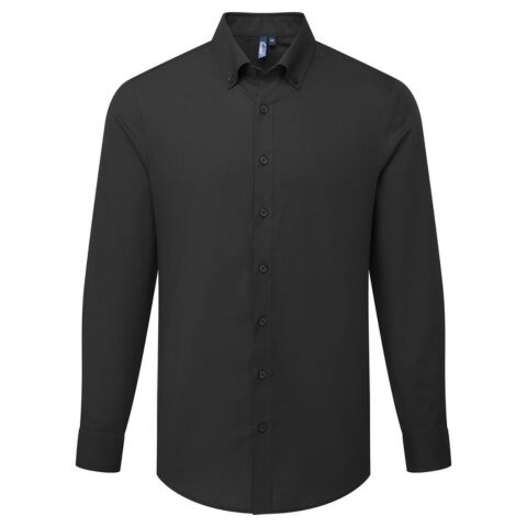 Long sleeve shirt in mercerised cotton, which enhances its overall look, feel and performance. Contains organic cotton and elastane for stretch and shape. Button-down collar. Self-coloured buttons with pearlised buttons on white. Double-button cuff with single button sleeve guard. Back yoke for fit over the shoulders and back darts to assist the shape. Curved hemline.