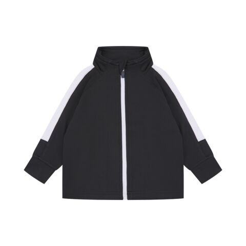Kids track top with contrast panels down the arms and with a contrast zip. Ribbed cuff and hem.