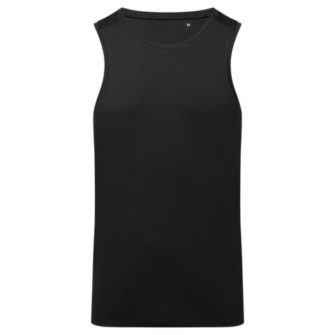 Performance vest. Cationic-dyed. Certified recycled polyester. Wicking fabric. Stretch. Lightweight. Dropped hem. Forward shoulder detail. Crew neck. Smooth finish.