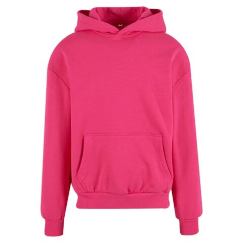 The men's hoodie features a large hood and wide rib cuffs on the sleeves and hem. The integrated kangaroo pockets add a practical touch. A casual urban fit with dropped shoulders creates a masculine silhouette. The men's hoody is made of smooth and heavy brushed fleece, which can be further refined using flex or screen printing.