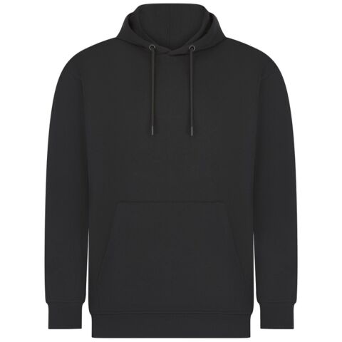 Unisex relaxed-fit hoodie. Set-in sleeves, dropped shoulders. Droptail hem – curved high front, low back. Ribbed hem cuffs. Single Jersey back neck tape and hood lining. Dyed-to-match drawcords. Kangaroo pocket. Tonal topstitching detail. Brand-free, for easy rebranding. Contains recycled cotton and recycled polyester.