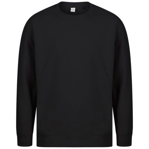 Unisex relaxed-fit sweat. Set-in sleeves, dropped shoulders. Droptail hem – curved high front, low back. Ribbed hem cuffs and crew neck. Single Jersey back neck tape and facing. Tonal topstitching detail. Brand-free, for easy rebranding. Contains recycled cotton and recycled polyester.