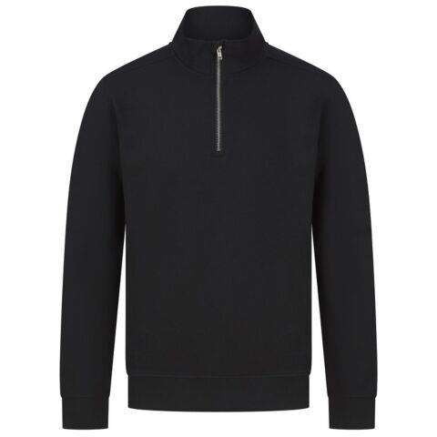 Sweatshirt made from fabric using recycled materials. Regenerated cotton mixed with recycled polyester. Brush back fleece. Set-in sleeves. 1/4 zip metal front zip. Ribbed cuff and hemline. Regular fit. Two in-seam, side-zipped pockets. Side panels. Henbury cut-out label for easy rebranding.