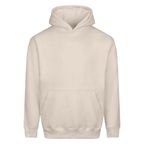 Heavyweight. Relaxed fit. Three-panel self-fabric hood with no drawcords. Kangaroo pouch pocket. Ribbed cuffs and hem. Locker patch. Brushed inner fleece. Twin-needle stitching detail. Size label only. 100% cotton-faced fabric.