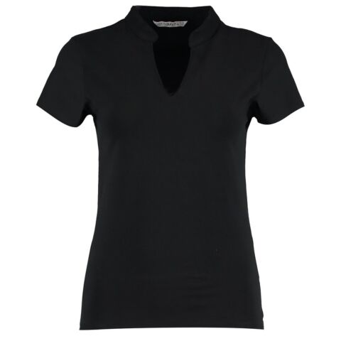 Stand-up mandarin collar. Self fabric fused facing around v-neck. Self fabric taped shoulder seams. Twin-needle hem and cuffs. Kustom Kit® woven back neck label.