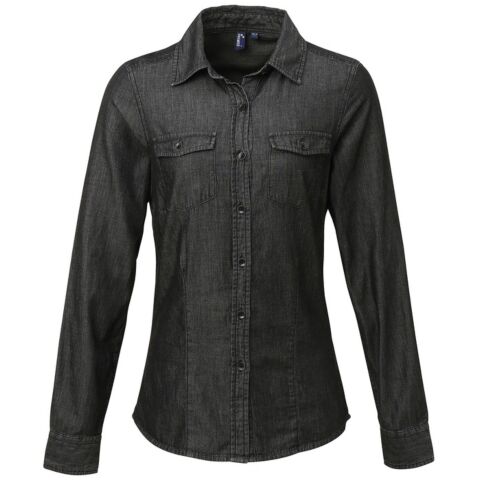 Long sleeve denim shirt with contrast stitch detail with two chest pockets. Buttoned cuff and sleeve guard. Curved hem. Back yoke.