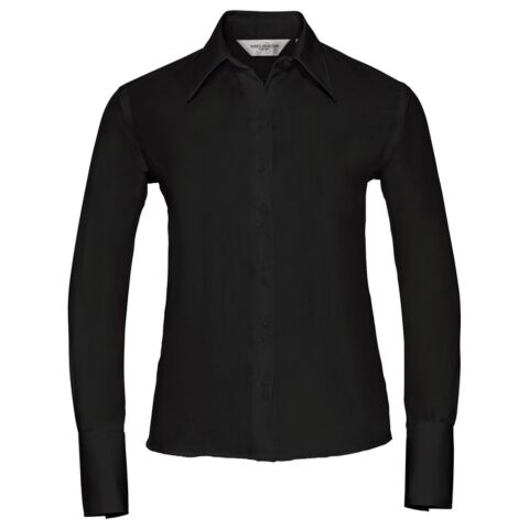 Made using the newest technologies of non-iron fabric that stays wrinkle free and keeps the wearer looking and feeling smart all day long. Contemporary fit combined with contemporary designed features. Stylish and relaxed long edged collar. Fashionable twin button fastening. Shaping at the waist for flattering feminine silhouette. Long, squared edge flared cuff with single button fastening and option for cuff links. Rounded hem.