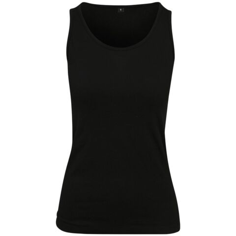 Tank top, sleeveless, low round neck, cuffs at hem, neckline and armholes.