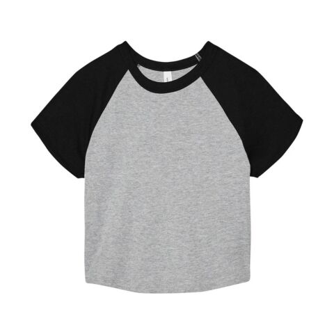 Crew neck binding. Set-in cap sleeve. Mid-length. 1x1 micro rib. Fitted. Stretch fit. Pre-shrunk. Side-seamed.