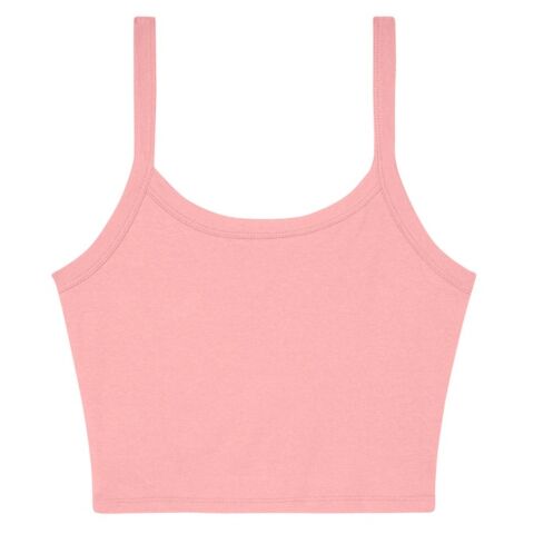 Thick spaghetti straps. Mid-length. 1x1 micro rib. Fitted. Stretch fit. Pre-shrunk. Side-seamed.