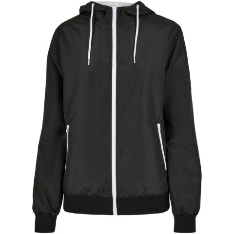 Casual basic windbreaker for women made of 37% recycled mesh material with ribbed cuffs and hem. Perfect for printing the jacket - insert in the back and the lining hem with zipper ensure that the jacket can be printed without problems. Top wearing comfort thanks to the pleasant material, the light mesh lining and the regular cut plus hood with drawstring.
